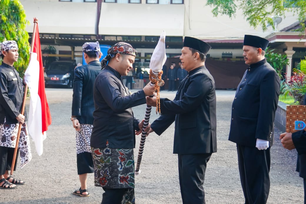 Mediakompasnews.Com – Slawi – Bupati Tegal Ischak Maulana Rohman menyerahkan pataka atau panji-panji kedaerahan berupa Tombak Pusaka Kyai Plered, Bendera Pakta Integritas dan Bendera Merah Putih kepada keluarga besar Kalisoka, Jumat (16/05/2025).