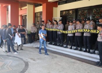Mediakompasnews.Com - Sumenep - Kepolisian Resor Sumenep melakukan Giat Pengamanan Aksi yg dilakukan oleh Aliansi Sumenep Forum di depan kantor...