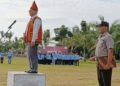 Haji Isam didampingi sang putra, Jhoni Saputra, berada di barisan depan memimpin peserta jalan sehat mengitari rute yang telah ditentukan.