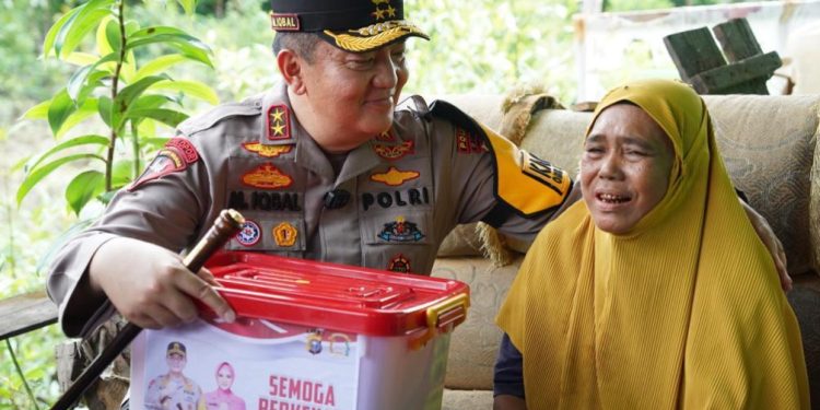 Setelah berbincang dengan si nenek, Irjen Iqbal menyerahkan sebuah boks plastik berisikan paket sembako. Bantuan langsung diserahkan kepada anak perempuannya sebagai bentuk kepedulian dan dukungan dari Kapolda Riau.