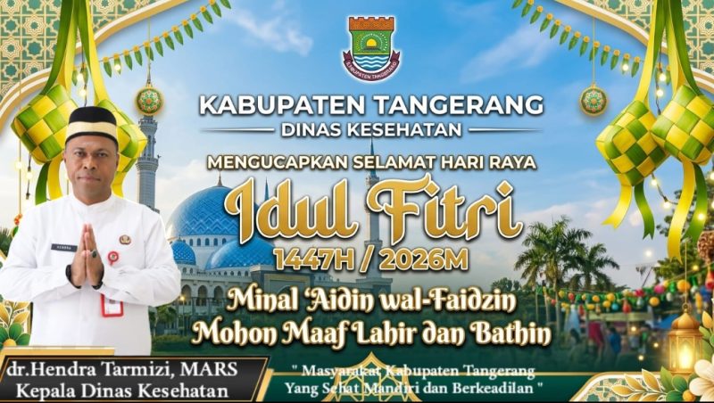 Kami dari Dinas Kesehatan Kabupaten Tangerang dalam kesempatan yang baik Kami Mengucapkan Selamat Hari Raya Idul Fitri 1447 H Mohon Maaf Lahir dan Batin.