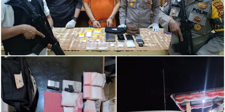 Masih Iptu, Suheri menjelaskan, rincian Barang Bukti, Setu Plastik klip berukuran Besar berisi Sabu, Dua Plastik klip berukuran sedang berisi Sabu, Tiga Plastik Klip berukuran kecil berisi Sabu, Satu tas berwarna Coklat merk Polo Amstar, Satu Tas merk Svggest berwarna Hitam, Satu Buku Diary warna Coklat Biru Satu Kotak bekal warna Orange yang dilapisi Aluminium Voil warna Silver, Dua Unit Timbangan Digital, Dua Bungkus Plastik klip Besar berisi pembungkus Plastik Klip, Tiga Bungkus Plastik Klip sedang berisi pembungkus Plastik Klip, Empat Bungkus Plastik Klip Kecil berisi pembungkus Plastik Klip, Satu Unit HP Merk Realmi warna Hijau, Satu Unit HP merk Oppo Reno 8 warna Orange, Satu Lembar STNK mobil Kijang Innova, Satu Kunci Mobil kijang innova dan Satu Unit Mobil merk Kijang Innova dengan Plat BM 1294 TLXI.