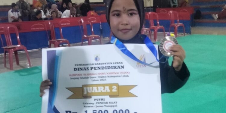 Mediakompasnews.com – Lebak – Prestasi yang membanggakan kembali ditorehkan siswa SDN 1 Jatimulya. Mara Fitriyani,, pesilat SDN 1 Jatimulya berhasil meraih medali emas cabang olahraga Pencaksilat dalam ajang Olimpiade Olahraga Siswa Nasional (O2SN) Tingkat Kabupaten Lebak Tahun 2024 pada Rabu, 21 Mei 2025 di Padepokan Silat Dispora Kabupaten Lebak