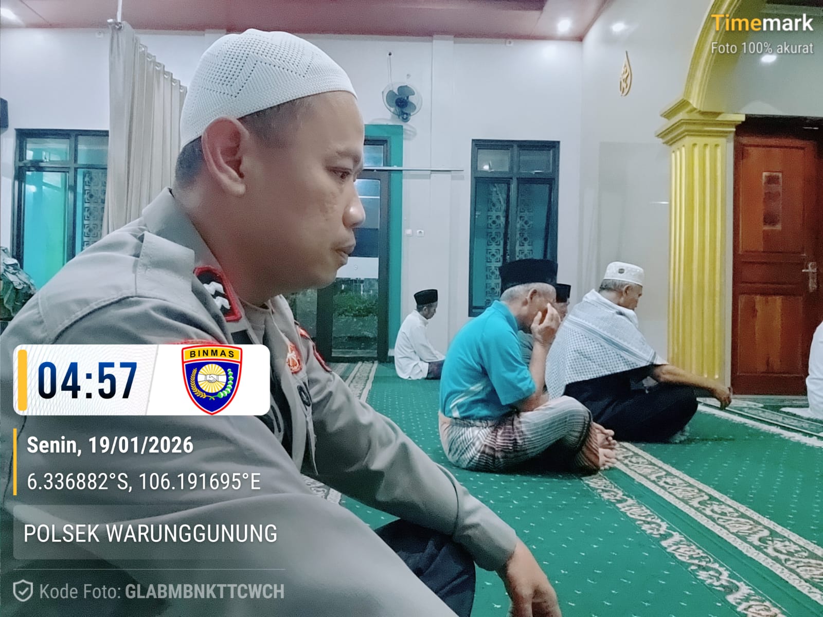 Mediakomapasnews.Com – Lebak – Panit 2 Binmas Polsek Warunggunung Aiptu Dedi Mulyadi .SH,MH.beserta anggota Jaga Yanmas Polsek Warunggunung Laksanakan Giat Solat Subuh Polsek Warunggunung Laksanakan giat comander wish Kapolda banten solat subuh di Mushola At Iklas Kp.Pertelon Desa Warunggunung Kecamatan Warunggunung Kabupaten Lebak.Senin 19 Januari 2026.
