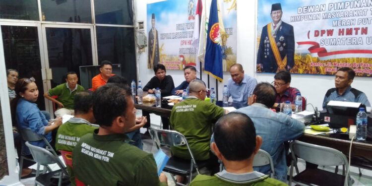 Rapat terakhir persiapan pelantikan 33 DPD plus DPW Himpunan Masyarakat Tani Nusantara Merah Putih (HMTN-MP) Sumatera Utara, berjalan lancar.