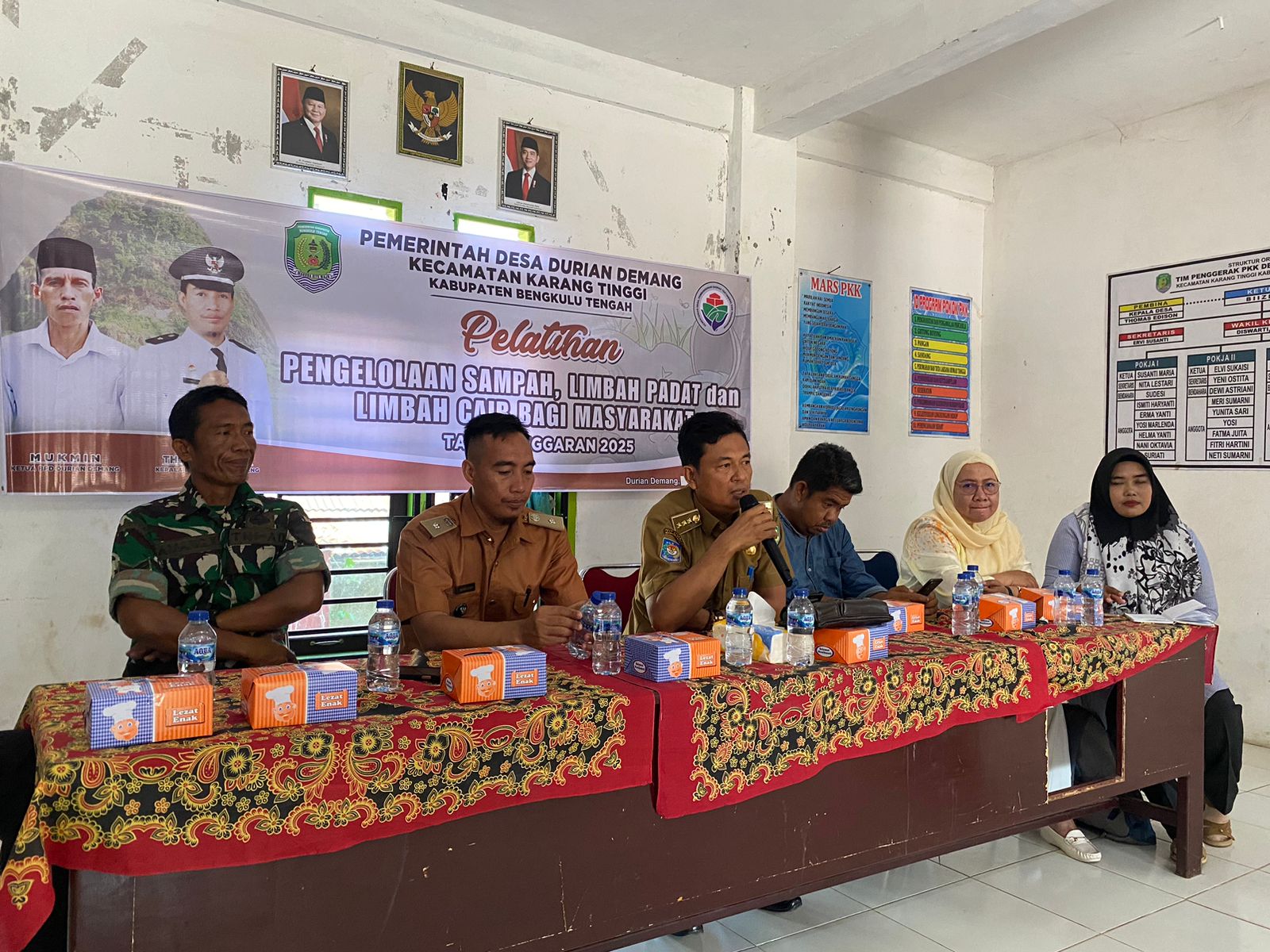 Kegiatan tersebut di hadiri oleh pemerintah Desa durian Demang, anggota BPD, babinsa, camat karang tinggi, dinas lingkungan hidup kabupaten Bengkulu Tengah, ibu ibu desa durian Demang dan praktisi dari propinsi bengkulu, dan acara tersebut berjalan dengan lancar dari awal sampai akhir acara.