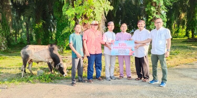 Mediakompasnews.Com – Rokan Hulu – Penyerahan bantuan 1 ekor sapi qurban dari PTPN 4 regional 3 melalui manajemen kebun dan PKS Sei Rokan kepada Desa Pagaran Tapah kec.pagaran tapah Darussalam yang diserahkan oleh Manajer Kebun Sei Rokan Bapak Choiri dan Manajer PKS Sei Rokan Bapak Andre didampingi oleh APK Kebun Sei Rokan Bapak Nova Lihardo Damanik.
