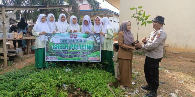 Mediakompasnews.com — Rokan Hulu – Dalam upaya mendukung program Green Policing serta mewujudkan kepedulian terhadap pelestarian lingkungan, Polres Rokan Hulu bersama Polsek jajaran menggelar kegiatan penanaman pohon secara serentak di 13 sekolah yang tersebar di seluruh wilayah Kabupaten Rokan Hulu, pada hari ini, Selasa (4/11/2025).