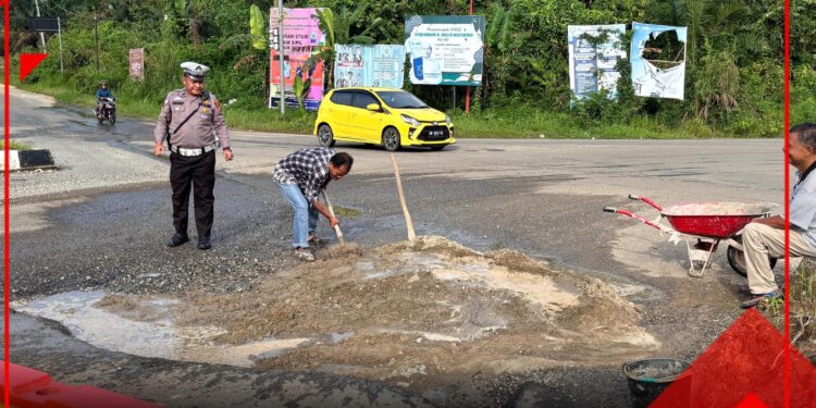 Perbaikan jalan ini melibatkan tiga personel Satlantas, yaitu Aipda Yhosep Rizal, Bripka Riza Gusmira, SH, dan Brigadir Umi Kalsum, SH. Langkah ini diambil untuk menciptakan kenyamanan serta keamanan bagi masyarakat pengguna jalan, sekaligus mendukung kelancaran arus lalu lintas di kawasan tersebut.