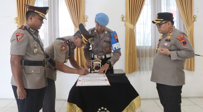 Kapolres Tegal Kota AKBP Rully Thomas memimpin langsung upacara serah terima jabatan (sertijab). Turut hadir para Pejabat Utama Polres, Kapolsek dan seluruh anggota yang sedang tidak melaksanakan tugas.
