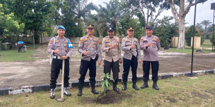 Mediakompasnews.Com — Kepenuhan – Dalam semangat mendukung program Kapolda Riau “Penghijauan Alam”, Polsek Kepenuhan menggelar kegiatan unik dan penuh makna pada Senin pagi (07/04/2025). Bertempat di halaman Mapolsek Kepenuhan, kegiatan tersebut berupa pemberian hadiah ulang tahun kepada personel dalam bentuk bibit pohon mangga yang langsung ditanam bersama-sama.