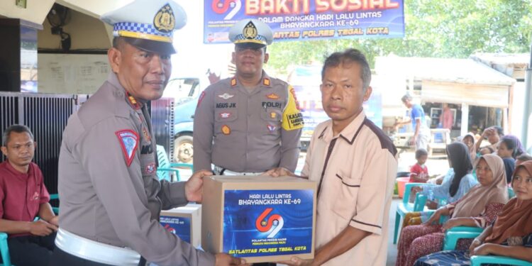 Mediakompasnews.Com – Kota Tegal – Satlantas Polres Tegal Kota menggelar kegiatan bhakti sosial. Bakti sosial kali ini berupa pembagian air bersih dan bingkisan paket sembako kepada masyarakat. Kegiatan berlangsung di RW 10 Kelurahan Panggung, Kecamatan Tegal Timur, Kota Tegal, Kamis (5/9/2024).