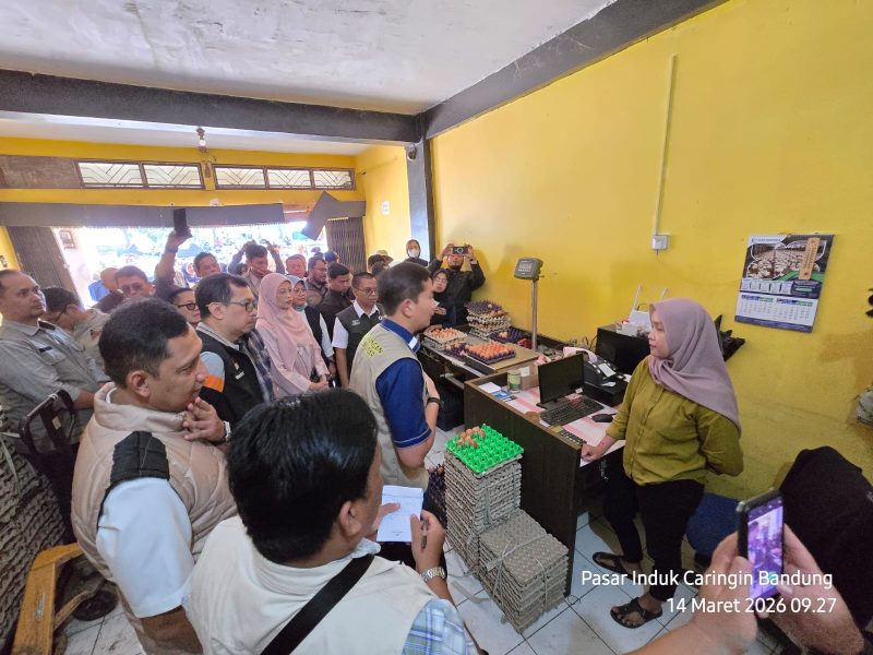 Mediakompasnews.Com – Bandung – Badan Pangan Nasional (Bapanas) bersama Satgas Pangan Polri, Dir Rekrimsus Polda Jabar dan sejumlah instansi yang tergabung dalam Satgas Saber Pelanggaran Pangan terus melakukan pemantauan secara intensif terhadap perkembangan harga, keamanan dan mutu bahan di Pasar Kosambi, Pasar Induk Caringin, serta distributor telur ayam ras di Kota Bandung, Sabtu 14 Maret 2026.