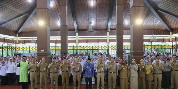 Mediakompasnews.Com – Slawi – Sekda Kabupaten Tegal Amir Makhmud menyerahkan secara simbolis surat keputusan (SK) pengangkatan 400 Pegawai Pemerintah dengan Perjanjian Kerja (PPPK) formasi tahun 2023 bertempat di Pendopo Amangkurat, Senin, (01/04/2024).