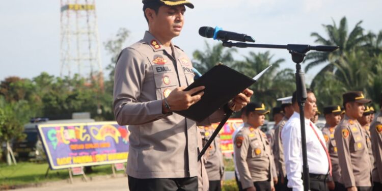 Mediakompasnews.Com — Rokan Hulu – Suasana khidmat menyelimuti Lapangan Apel Polres Rokan Hulu pada Sabtu pagi (19/4/2025) saat dilaksanakannya Upacara Serah Terima Jabatan (Sertijab) Kasat Intelkam dan Kapolsek Rambah. Kegiatan dimulai pukul 08.00 WIB dan dipimpin langsung oleh Kapolres Rokan Hulu, AKBP Emil Eka Putra, SIK.,SH.,M.Si sebagai Inspektur Upacara.
