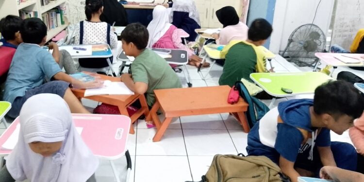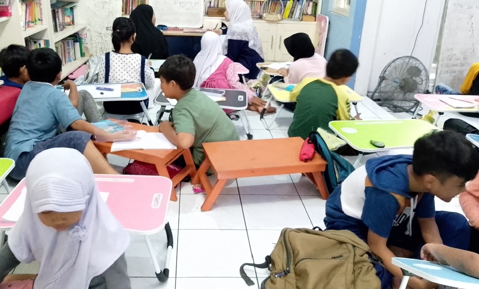 Setiap hari Minggu, halaman kecil di depan taman baca ini selalu ramai oleh tawa anak-anak. Mereka datang bukan hanya untuk membaca, tetapi juga mengikuti bimbingan belajar (bimbel) gratis yang diadakan dengan tiga mata pelajaran utama. Ada kelas calistung (membaca, menulis, berhitung) untuk anak kelas 1–3 SD, kelas Bahasa Inggris dengan dua level A untuk dasar dan B untuk tingkat lanjut, serta kelas Matematika untuk siswa SD dan SMP.
