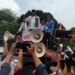 Usai mendaftar ke KPU Kota Tegal, Uyip-Satori bersama ribuan pendukung konvoi menuju ke Gedung Mulya Damai untuk menggelar acara deklarasi. ( met)