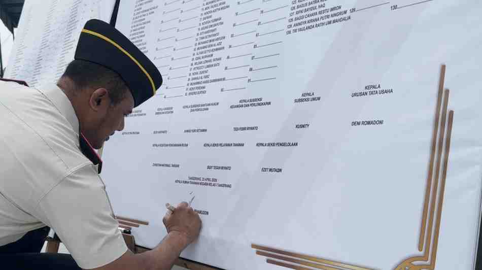 Sebagai simbol kesungguhan, kegiatan dilanjutkan dengan penandatanganan komitmen bersama oleh seluruh jajaran Rutan Kelas I Tangerang.